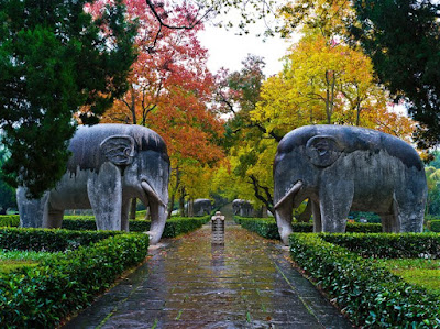 2 : The Sacred Path leading to the Ming Tombs at Purple Mountain in Nanjing, China Caption